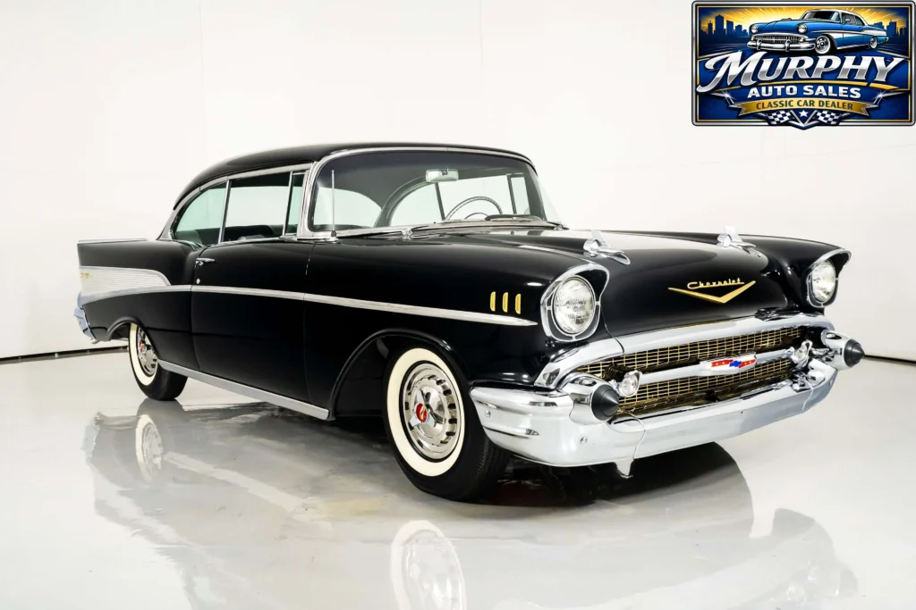 This 1957 Chevrolet Bel Air is a flawless example of classic American automotive design. With just 46 miles on the odometer, this black two-door hardtop exudes a sleek, timeless presence. It sits on 14″ steel wheels with Chevrolet hubcaps, keeping its vintage charm intact. Under the hood, the powerful 283 C.I. V8 engine, paired with a 4-speed manual transmission, delivers an exciting driving experience. Inside, the black vinyl bench seat maintains the period-perfect look, offering a simple yet elegant interior. This Bel Air is a beautifully preserved piece of automotive history, making it an ideal find for any classic car enthusiast.